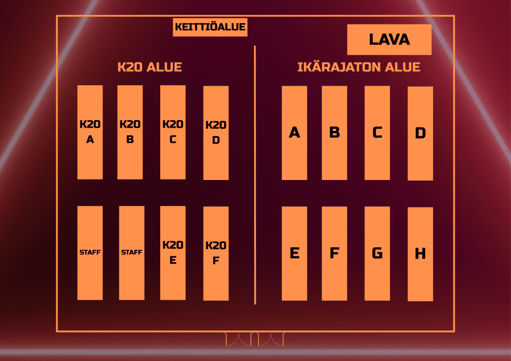 - K20 konepaikka (ikä tarkastetaan lipunvaihdon yhteydessä)